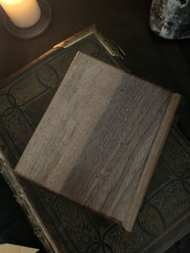 Small size box made from oak or walnut. Featuring